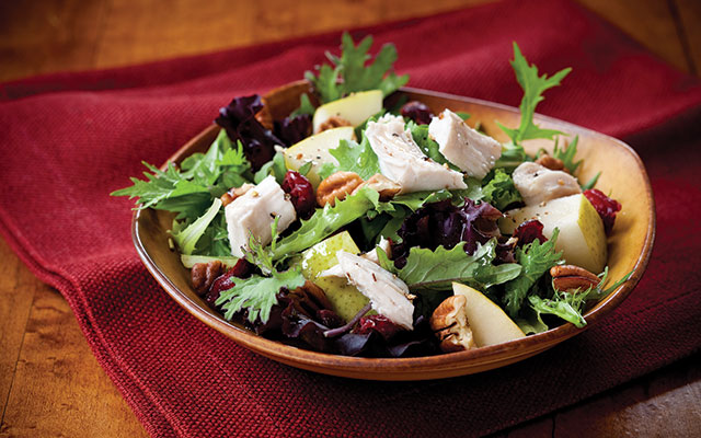 - Top salads with leftover turkey and add your favorite seasonal ingredients, such as diced pear or apple, dried cranberries and toasted pecans.
