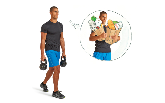 Prepares you for: Lifting and carrying a heavy log for firewood (or moving furniture and doing yardwork).